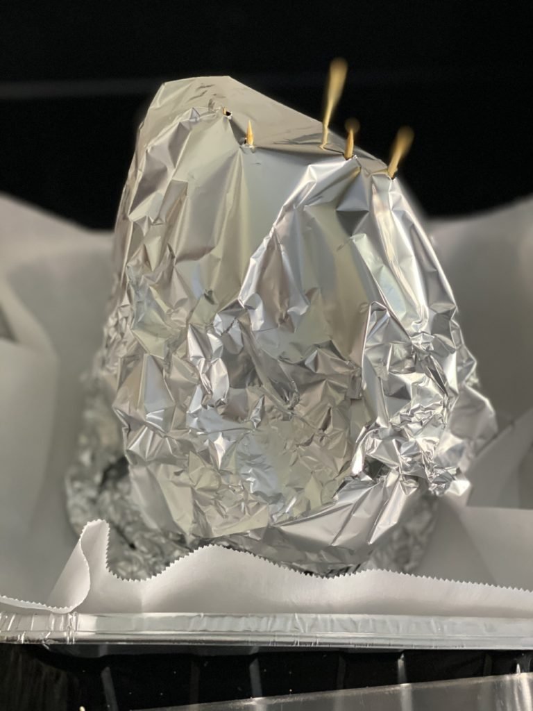 Wrap with parchment paper all around the chicken thighs and then wrap with Aluminum foil tightly.