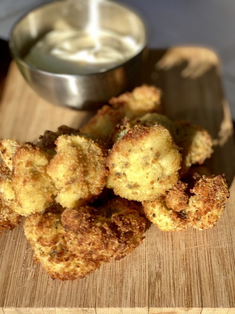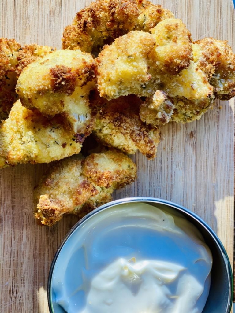 Option 1: spray with oil all around the cauliflower pieces, place it in air fryer for 15 minutes 400 F degree.
