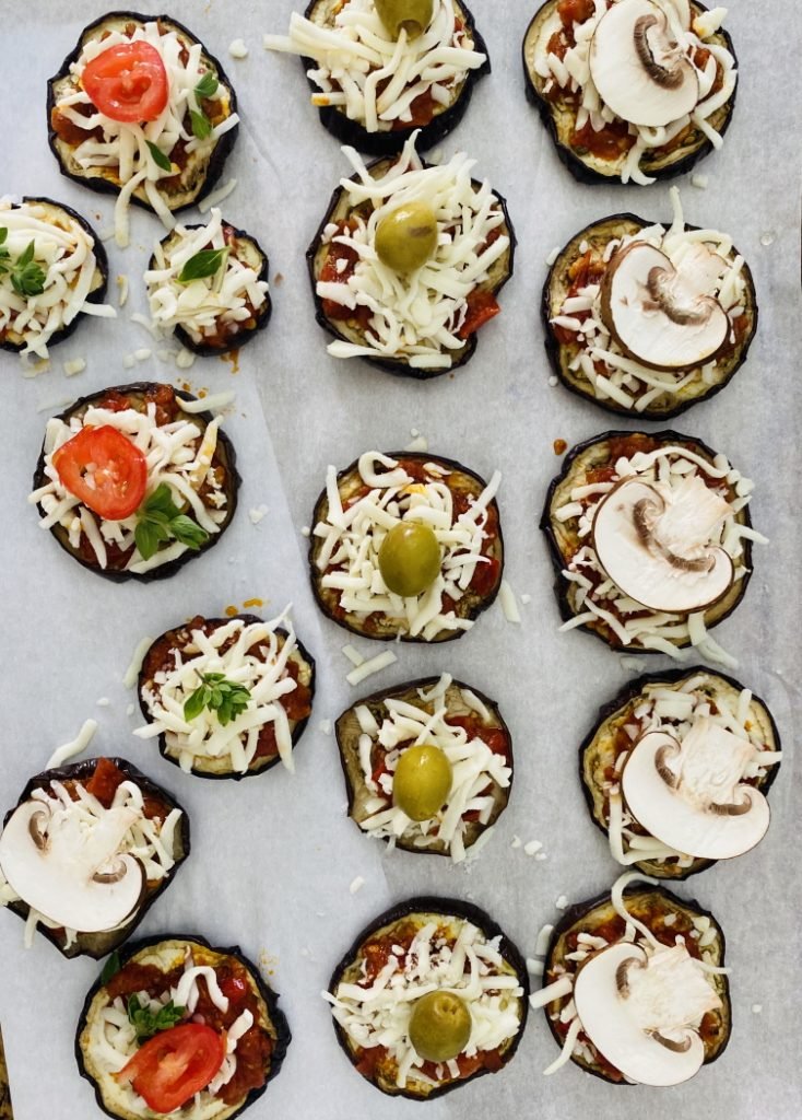 With a brush apply olive oil on each slice (both sides), place them on baking sheet over a baking tray.